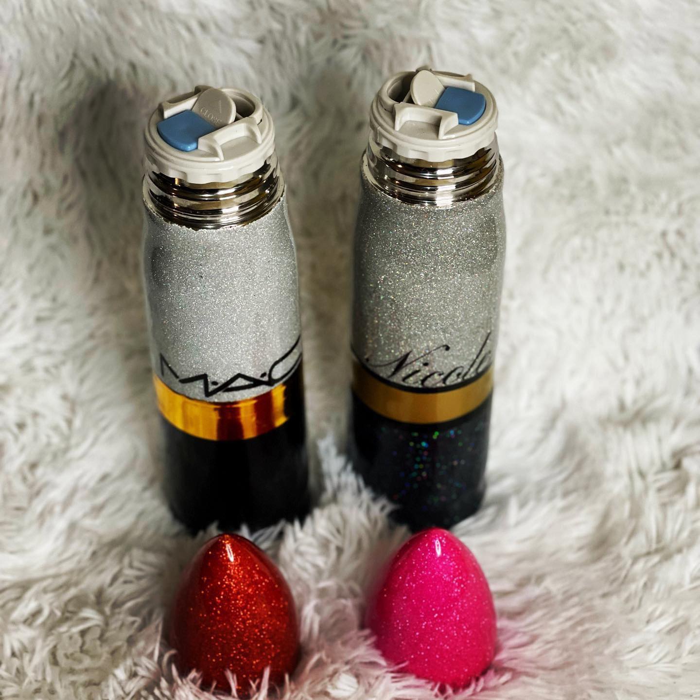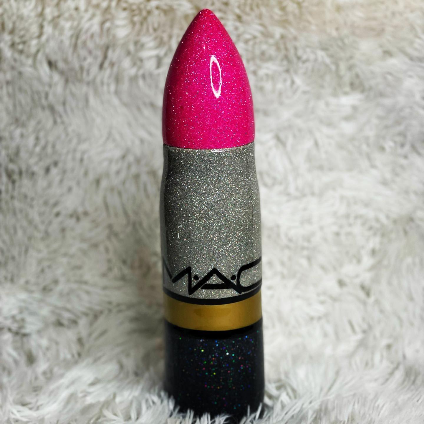 MAC Lipstick-Inspired Custom Glitter Tumbler – 17oz Thermos