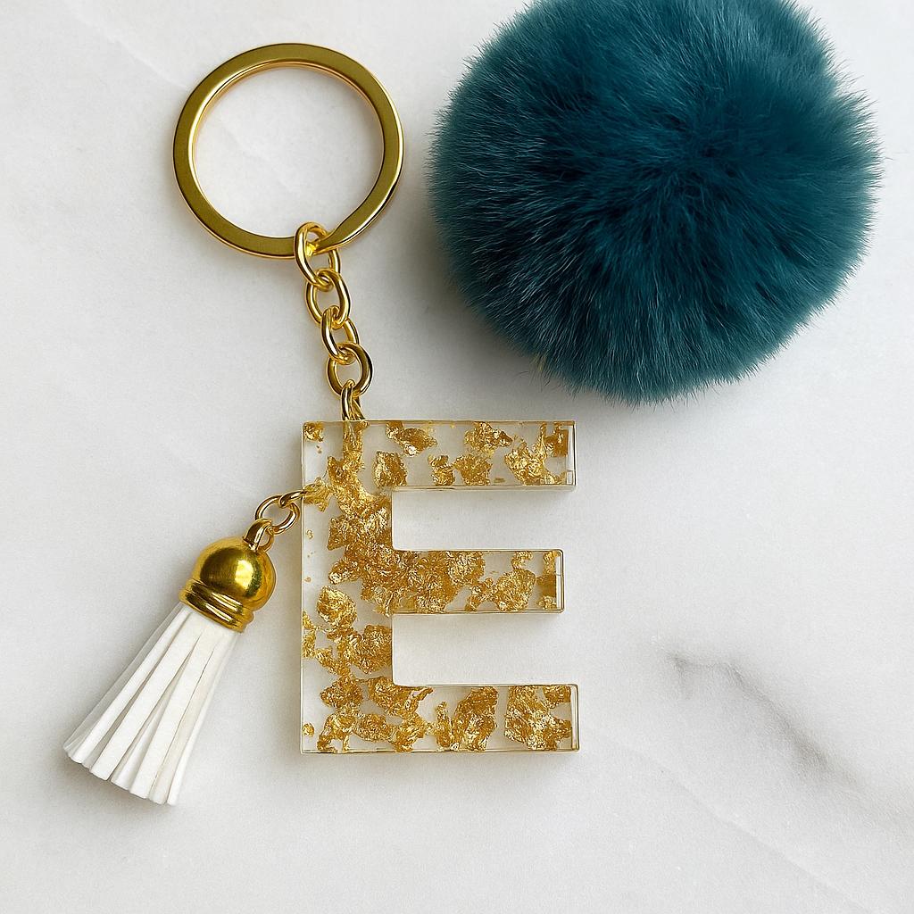 Make every day a little more golden. These handcrafted resin keychains feature your chosen initial, beautifully embellished with gold foil flakes and set in clear resin for a luxe, translucent look. Accented with your pick of tassel or fluffy pom pom, they’re the perfect statement for keys, bags, or gifts.
